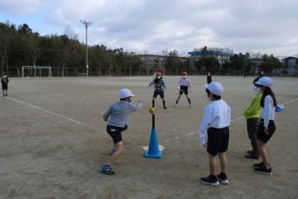 初めはルールを理解するのが難しい様子も見られましたが,後半には攻撃でねらう場所を考えたり,守りの時にはどこに投げてアウトにするべきか声を掛け合ったりと白熱したゲームができるようになりました。