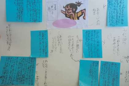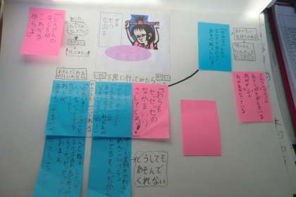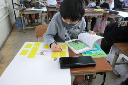 今はその学習から齋藤隆介さんの他の作品に出てくる登場人物の性格を読み,「せいかく丸分かりシート」に書き込んでいきます。