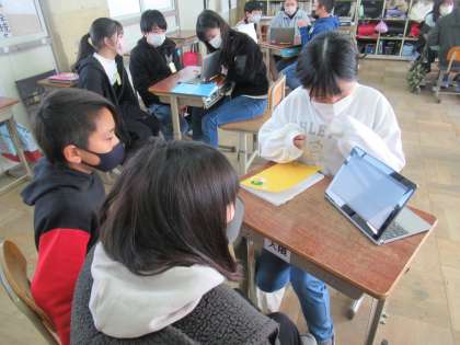 国語科で,筆者の考えを読み取り,社会と生き方について話し合う学習をしています。小学校最後の説明文ということもあり,複数の文章を重ね合わせて読むという難しいことにも挑戦しました。それぞれの筆者の主張をとらえたうえで,これからの社会と生き方について自分なりの考えをパワーポイントにまとめました。今日はそのパワーポイントを使って,プレゼンテーションをしました。自分と似たような考えや全くちがう考え,新たな視点からの考えなど,友達と交流することで,自分の考えをさらに広げることができていました。