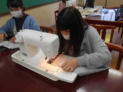 エプロンにミシンをかける準備ができたら,さっそくミシンをかけていきました。ミシンの使い方を学習したとはいえ,なかなか操作は難しく,悪戦苦闘しながらも頑張っていました。