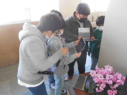 先日行う予定だった写真コンテストのオンライン授業ですが,延期となっていました。本日改めて実施することができ,写真の撮り方や,撮り方のテクニックをたくさん教えていただきました。また,光や影を上手に使った撮影の仕方や,背景を少しぼやかす撮り方などを教えていただき,実際に写真を撮る練習をしました。子どもたちは,教えてもらったテクニックをたくさん生かしながら意欲的に撮影していました。写真コンテストに出す写真のテーマは「ONE」です。一人一人が思う「ONE」を写真で表現してほしいと思います。
