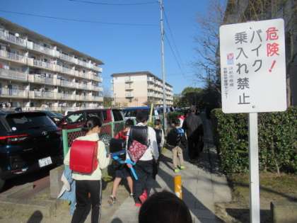 これまでは教室まで迎えに来てもらっていた1年生も,今回は自分たちだけで町別の教室へ移動します。