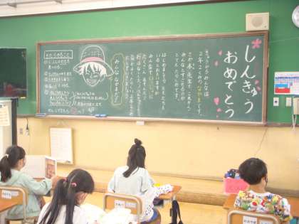 子どもたちへの黒板のメッセージは,いっしょにがんばっていこう!と思える心燃えるものばかりです。
