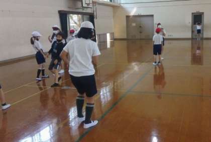 今日の体育では,「線おに」という鬼ごっこをしました。鬼も逃げる人も線の上しか歩けない,というシンプルな鬼ごっこですが,これがなかなかどうして,盛り上がるのです!