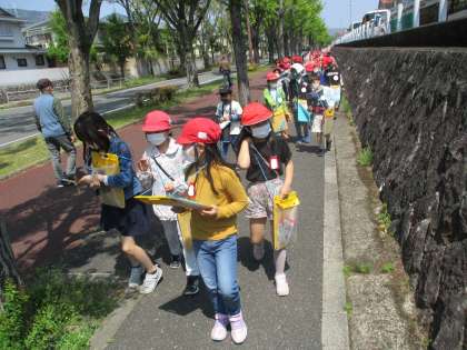 また,友だちと楽しく話しながら,学校の周りにあるものを確認していました。