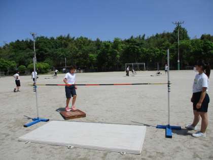 50メートル走のタイムと身長から,目標の高さを調べ学習が始まりました。