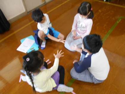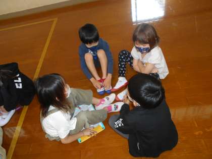 今日は6日(金)の学校探検につれていってくれる2年生と「なかよくなろうの会」をしました。2年生がリードしてくれて,自己紹介をしたり,座ってできるあそびをしたりしました。金曜日の学校探検がもっと楽しみになりました。