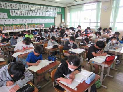 今日は5年生になって初めての「TAKEタイム」がありました。6時間目の後にまた学習・・・最初は少しマイナスな発言も出てましたが,「どうせやるならみんなで頑張って力をつけよう!」ということで,30分間,全力で頑張りました。さすが5年生!集中している姿,とてもかっこよかったです。