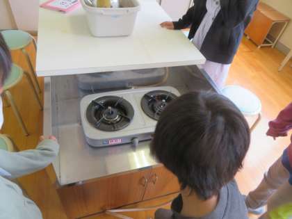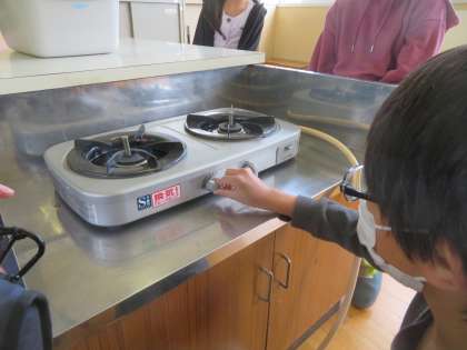 今日の家庭科は,安全なコンロの使い方を学び,家庭科室で実践しました。