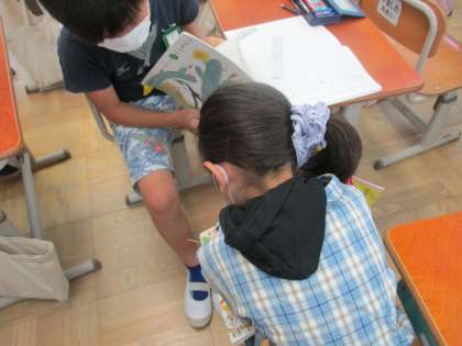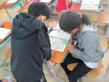 国語科の学習では,だいじなことを落とさずに話したり聞いたりする学習をしています。ともだちが遊園地にいる人を見つけられるように,説明をすることができました。
