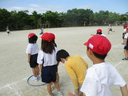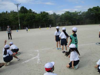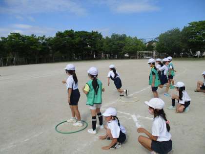 体育科の学習では,リレー遊びをしています。暑い中でしたが,一生懸命に走って,バトンをつなぐことができました。