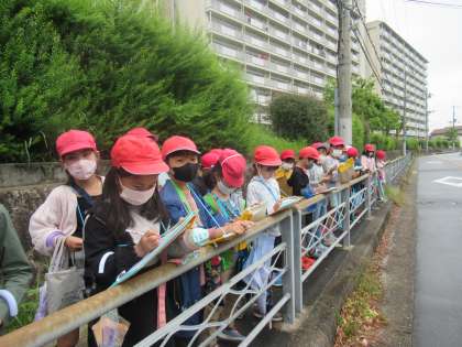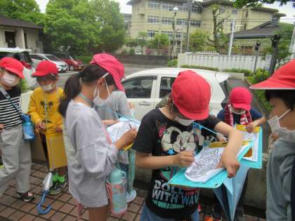 元福西小の子どもたちが知らない子たちに校区について紹介していました。