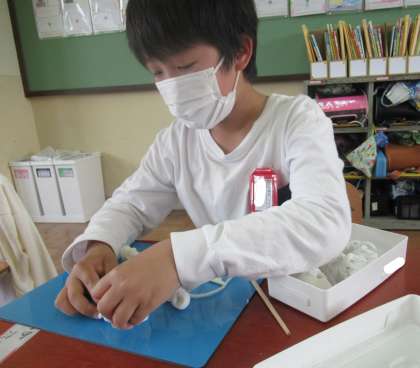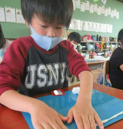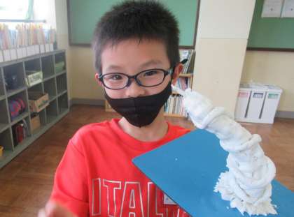 図画工作科「切って かき出し くっつけて」では,用具を使って粘土の形をどんどん変えていきました。全部の粘土を使って,かき出し,かき出したものをくっつけて・・・・・と,自分の思いを膨らませながら作品を作っていきました。そして,オリジナルの作品が出き上がりました。