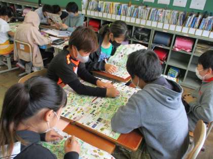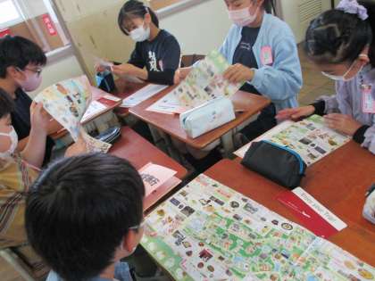 二日目に行くリトルワールドで食べたいものや見たいものをグループで話し合いました。どのように歩くとみんなの行きたい国へ行くことができるのか考えていました。