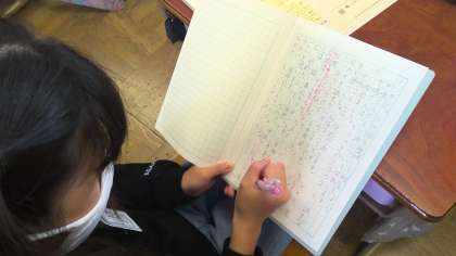 国語の「きいてきいてきいてみよう」の学習で,話し手・聞き手・記録者に分かれてインタビューに挑戦しました。インタビュー内容を整理し,報告文を書きました。今回はそれだけではなく,「再考」にも挑戦!まずは自分でじっくりと読み返します。言葉にこだわって表現を変えてみたり,順序を変えてみたり・・・自分で再考した後は,友だちともアドバイスし合います。報告会が楽しみです。