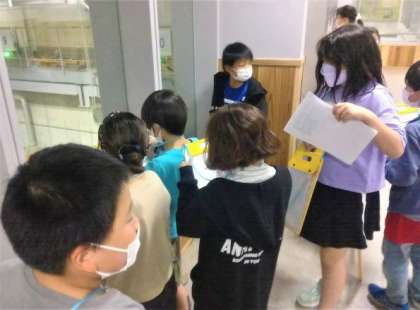粗大ごみを捨てる様子や,巨大クレーンがごみを細かく砕く様子,ごみを燃やした後に残る灰を埋め立てる音羽の杜の大きなパネルなどを見て,ごみが処理されていく工程を学習しました。子ども達は,自分が立てた学習課題を解いたり,疑問に思っていたことを職員の方にたくさん質問したりしていました。