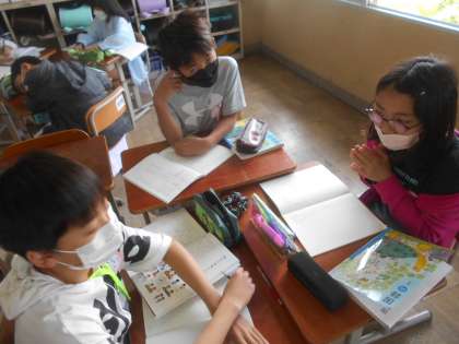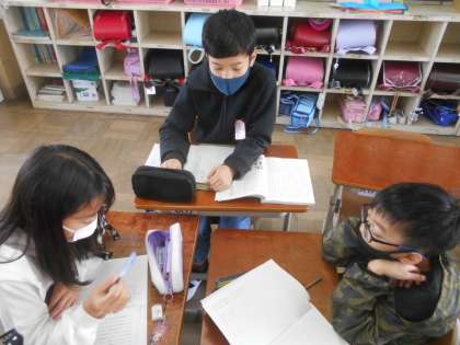 算数の授業や国語の授業では自分の考えを友達にしっかりと伝えることを頑張っています。図や式を用いて説明したり,理由を明らかにしながら説明したりとグループの人やクラス全体に向かって頑張って伝えています。