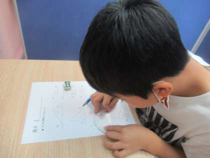 写真は,角とその大きさの学習中です!