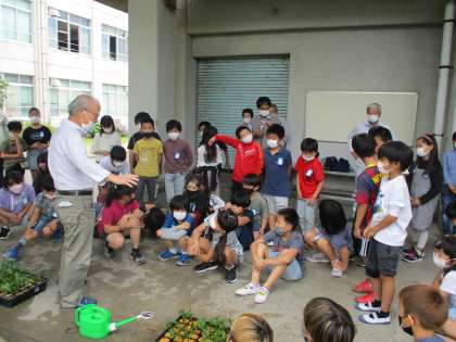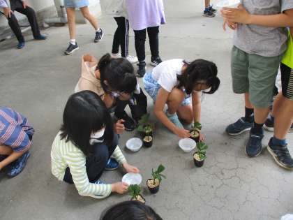 水は命!水をたっぷりやることを教えていただきました。これから,どのように成長するのか楽しみです。