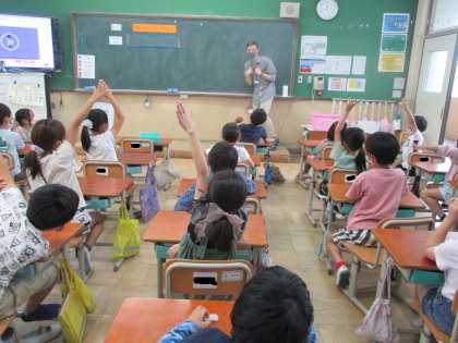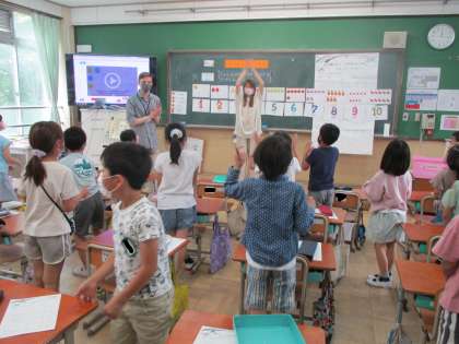 2年生ではじめての英語活動の学習をしました。子どもたちは楽しく数字の言い方を学習することができました。