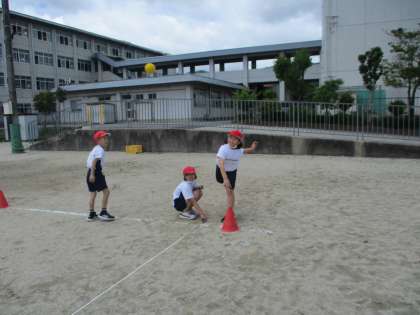 体育科では遠投を頑張っています。