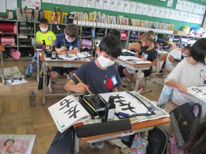 正しい筆順で点画の長さに気を付けながら,丁寧に仕上げていました。