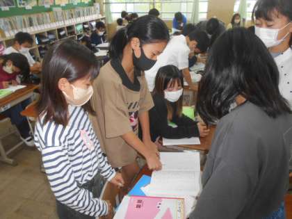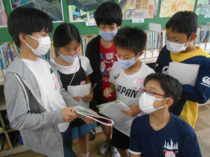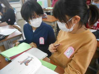 国語の時間の様子です。友達の考えを聞いたり,自分の考えを伝えたりしながら自分の問いを解決しています。友達の考えを聞くと新しい発見がありました。自分の考えと似てるところや,違うところをたくさん見つけ,問いの解決に生かすことができていました。