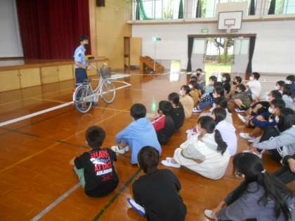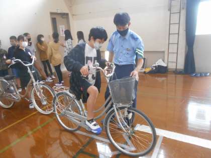 今日は自転車教室でした。学科では自転車の安全な乗り方について教えていただきました。交通ルールや,気を付けなければならないことなど分かりやすく教えていただきました。実技では,実際に自転車に乗って横断歩道の正しい渡り方や,ブレーキのかけ方,見通しの悪い交差点を渡る時の注意を教えていただきました。最後に学科の試験を行いました。みんな真剣な眼差しで学科試験に取り組んでいました。