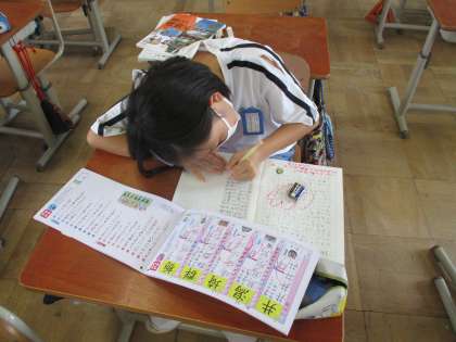 朝休みや5分間休憩,中間休み,子どもたちは漢字ドリルを見返したり,友だちと問題を出し合ったりと,自分の力を発揮するために,最後の最後まで努力する姿が見られました。