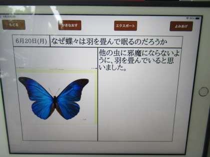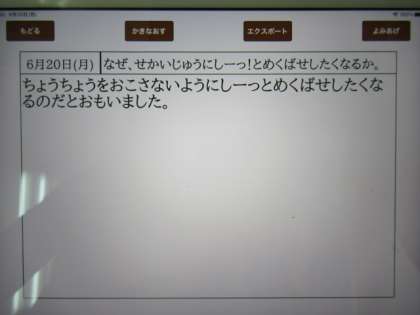 写真は,子どもたちがGIGA端末「えにっき」アプリで書いた画面です。