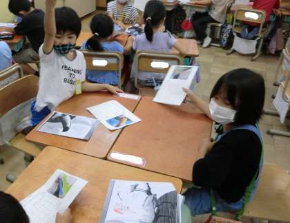 教科書を見本にしてそれぞれが選んだ鳥のくちばしクイズを作り,クイズを出し合いました。