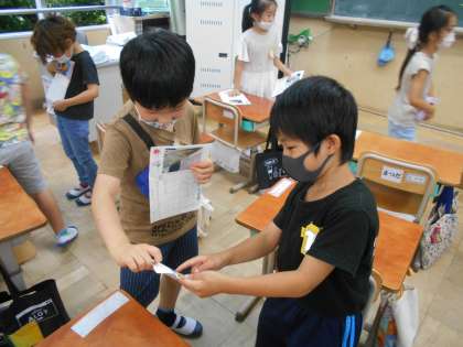 みんなで「くちばしクイズ」を出し合いました。学習したことをいかして作った「くちばしクイズ」で楽しみました。ふりかえりでは,「といとこたえに注目して読むことができた。」「みんなとクイズが出し合えて楽しかった。」という意見がたくさんありました。