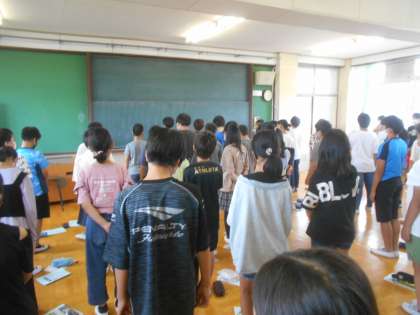 明日から修学旅行です。修学旅行に向けて学年で最終の打ち合せをしました。ルールや公共のマナーを守って楽しい修学旅行にしたいと思います。また一次統合して2ヶ月となります。さらに仲間との絆を深めてほしいと思っています。