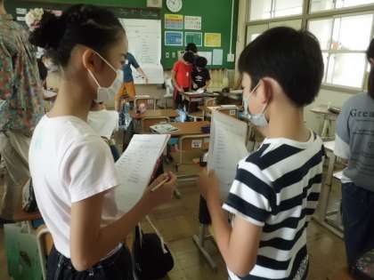 これまでに習った表現を相手や目的に応じて,しっかりと使おうとしていた6年生です。