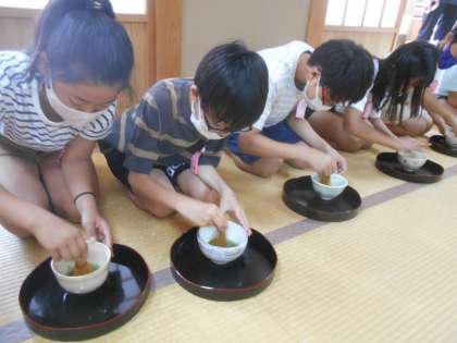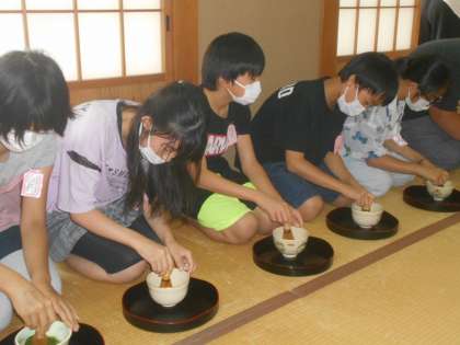 総合的な学習の時間では伝統文化について調べています。今日はゲストティーチャーをお迎えして茶道体験をしました。お茶の作法をしっかりと学習することができました。