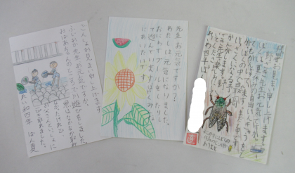 子ども達から,夏休みにはがきが届きました。夏休みにあった出来事や2学期にがんばりたいことなどが書かれたはがきを読んで,会えるのを楽しみにしている担任です。
