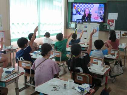 2時間目には子どもたちが楽しみにしている「手づくり乾電池制作」です。講師の方のお話をよく聞きながら,キットを使って制作を進めました。完成し,豆電球に明かりが灯った時,子どもたちはとっても嬉しそうで,モノづくりの喜びも体感できたようです。