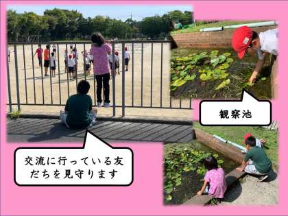 朝の会の途中に,交流に行っている友だちの応援に行きました。