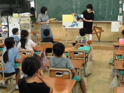 朝の読書タイムにお話宝石箱さんが絵本の読み聞かせに来てくれました。子どもたちは面白いお話にぐっと聞き入っていました。