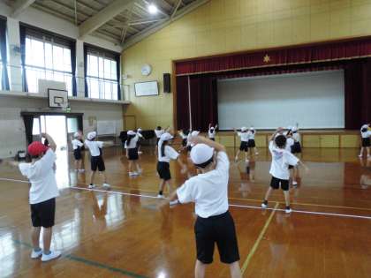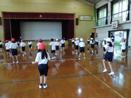 体育の学習では、体育参観に向けてダンスの練習をしています。子どもたちは楽しみながらも、一生懸命練習に取り組んでいます。
