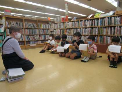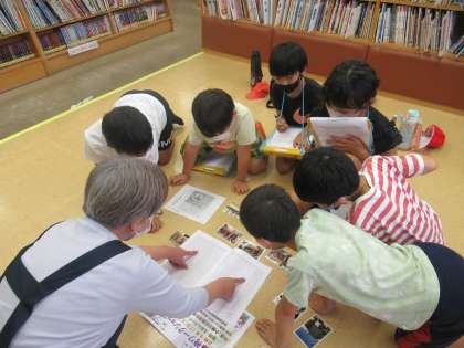 洛西図書館でインタビューしました。本が好きで図書館で働いていらっしゃるそうです。洛西図書館は,35年の歴史があり,今では約6万4千さつの本があります。その様子を見て,とっても驚いていました。小さいバスで,学校や老人福祉センターへ訪問することや皆さんに楽しんでもらえるような行事を考えることもされています。赤ちゃんからお年寄り,体の不自由な方と皆さんに「よかった」と思ってもらえるようにされていると聞いて,「やさしい図書館」とキャッチコピーをつけていました。