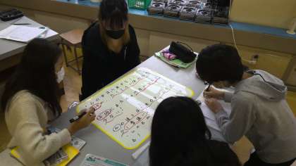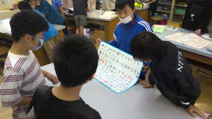 流れる水のはたらきで調べてきた内容をホワイトボードにまとめて発表しました。