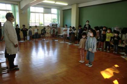 今日はいきものはかせの獣医さんに学校に来ていただいて,ウサギについて質問をしたり,一人ずつ抱っこをして聴診器で心音を聞いたりしました。