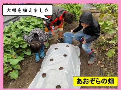 あおぞらの畑に大根を植えました。