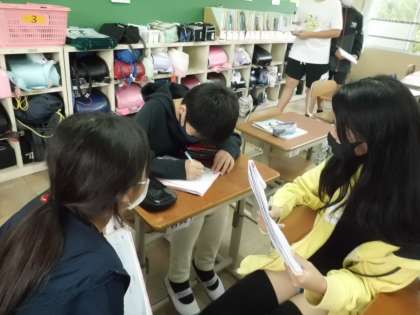 45分間では足りないくらい,やり取りに熱中していた子ども達。「もう終わったん?」「次もしたい。」と・・・。みんなが楽しそうに,そして一生懸命学べたことが,よーく伝わってきた1時間でした♪