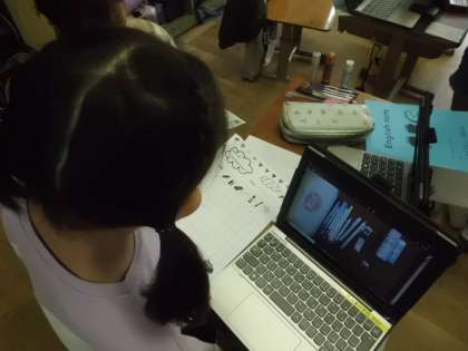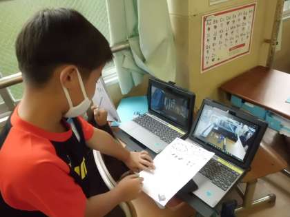 「どんなふうに撮ったら,分かりやすいかな。」と種類ごとに並び替えて撮っている子ども達。何も言わなくても,これまで習ってきた文房具の名前を思い出して,口に出しながら並べている子ども達。友達と一緒に数を数えている子ども達。やり取りをするまでのこの時間も子ども達には大切な時間です。