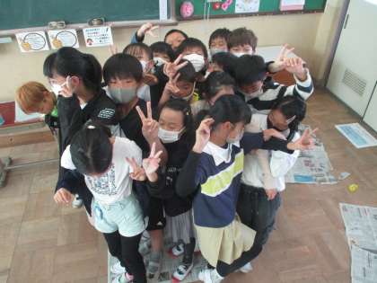 できあがった1平方メートルを見て,「これが何個あるかで教室の面積が求められるね」「1平方メートルって思っていたより広いね」「何人くらい乗れるかな」など,作ってみないと分からない子どもたちの発言が聞こえてきました。