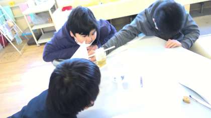 溶けていく様子をよく観察し、「水溶液」とはなにかを知りました。