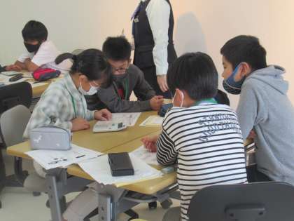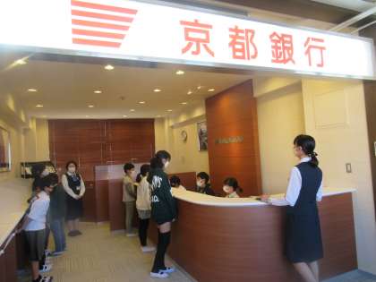 京都銀行では,札勘定や預金の払い出し等の窓口業務を行ったり,ある店舗で利益を出すためにはどんな工夫をすればよいのかを話し合い,いろいろなパターンの提案書を作成したりしました。何度も計算し直したり,計画を見直したりとみんなで粘り強く頑張る姿が輝いていました。