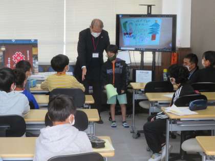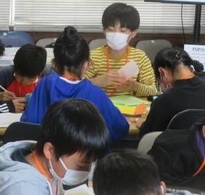 井筒八つ橋本舗では、八つ橋の販売を体験し、商品のPOPづくりをしました。前半は、販売側、お客側にわかれてロールプレイをしました。まず、お客様に感謝を伝えること、あいさつのことなど社会人として基本的なことを教えていただきました。「いらっしゃいませ!」「ありがとうございました!」などお辞儀もしっかりとしていました。気持ちのよい店舗づくりができていました。後半は商品を紹介するPOPをつくりました。どうすれば、商品の魅力が伝わるのか。お客様に手にしてもらうにはどんなデザインにすればいいかなど考えていました。最後には、すてきなPOPを提案することができました。実際の店舗に置いてもらえることもあるそうで、やる気いっぱいでがんばっていました。